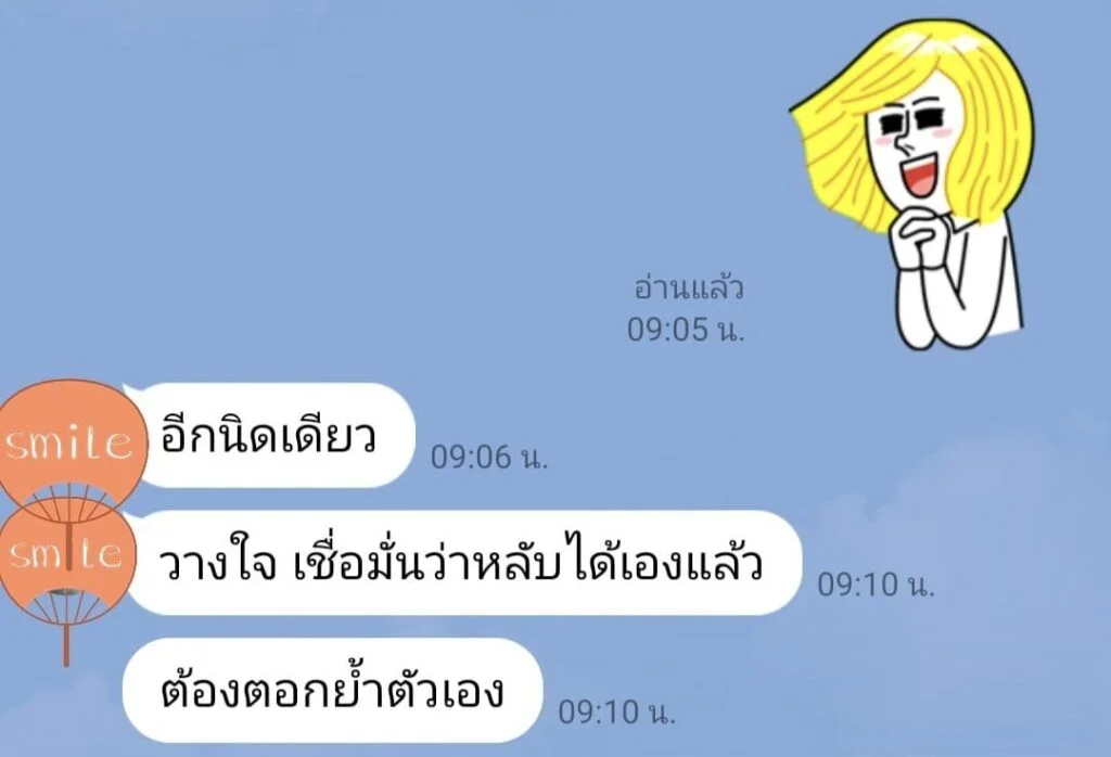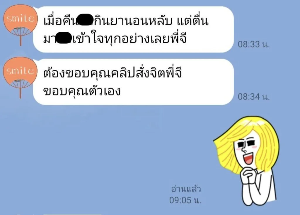 น้องดรีม (นามสมมติ) ทักแชทมาพูดคุยทาง Line@Gminds.co เมื่อปลายเดือนมิถุนายนที่ผ่านมา แล้วเล่าให้ฟังว่าตัวเองเป็นโรควิตกกังวลหลังคลอดบุตรแล้วประมาณสามเดือน รู้สึกทรมานมาก ไม่สามารถนอนหลับเองได้ เป็นมาประมาณเดือนหนึ่งแล้ว ต้องใช้ยานอนหลับตลอด ไปพบจิตแพทย์มาแล้วกำลังรักษาด้วยยาอยู่ น้องบอกว่าไม่อยากใช้ยารักษา และพยายามที่จะรับมือต่อสู้กับความคิดเชิงลบของตัวเองจนรู้สึกเหนื่อยมาก จีได้แชทพูดคุยสอบถามถึงอาการความเจ็บป่วยและการรักษาที่น้องดรีมได้รับเพิ่มเติม น้องตัดสินใจใช้ บริการโทรรับฟังด้วยใจ จีได้พูดคุยแนะนำการดูแลเยียวยาบำบัดตัวเอง เพื่อประคับประคองและรับมือกับอาการที่เผชิญอยู่ รวมทั้งส่งข้อมูลแนวทางต่าง ๆ ให้ทางไลน์เรื่อย ๆ