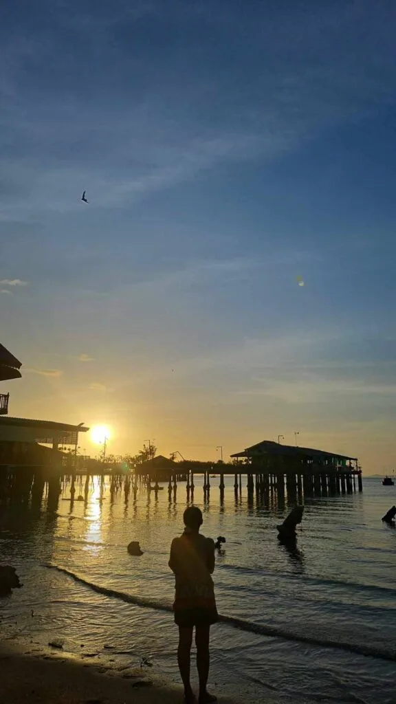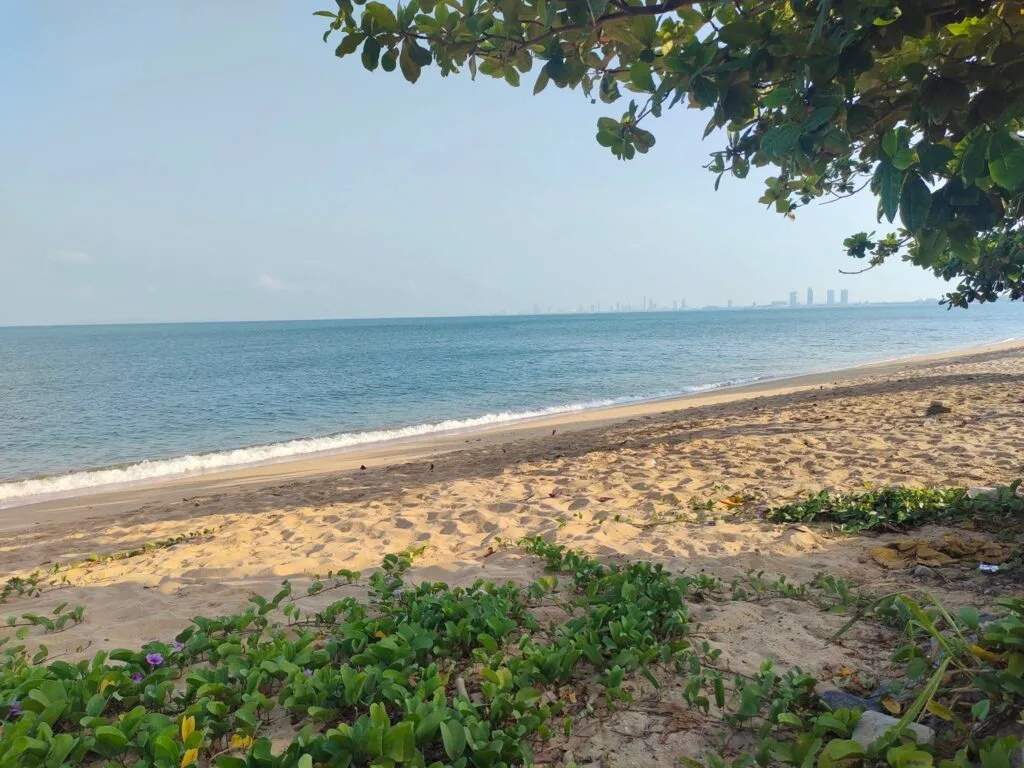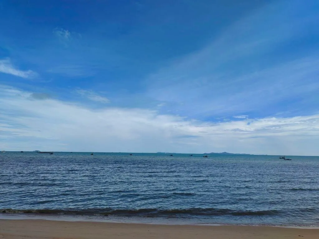 บางเสร่จะมีชายหาดที่ยาวประมาณ 1,500 เมตร จีมักจะออกไปปั่นจักรยานตอนเช้ากับคุณสามีจากที่พักไปจนสุดชายหาดบางเสร่ รูปชายหาดที่ถ่ายส่วนใหญ่นั้นเป็นช่วงปลายหาดที่ไม่ได้มีการให้บริการเก้าอี้ชายหาดหรือร้านอาหาร ซึ่งมักจะมีผู้คนพาน้องหมามาเดินเล่น และว่ายน้ำกัน บางคนก็นำเสื่อมาปูนั่งหรือนำเก้าอี้มานั่งอ่านหนังสือ นั่งเล่นที่ชายหาดตรงนี้ จีมักจะแวะไปถ่ายรูป เดินเท้าเปล่าเพื่อกราวน์ดิ้งกับธรรมชาติ สัมผัสกับผืนทรายและน้ำทะเลรับพลังธรรมชาติช่วงเช้า บรรยากาศสดชื่นดี เงียบสงบ ลมพัดเย็นสบาย ช่วยให้รู้สึกผ่อนคลายสบายกายสบายใจมากค่ะ