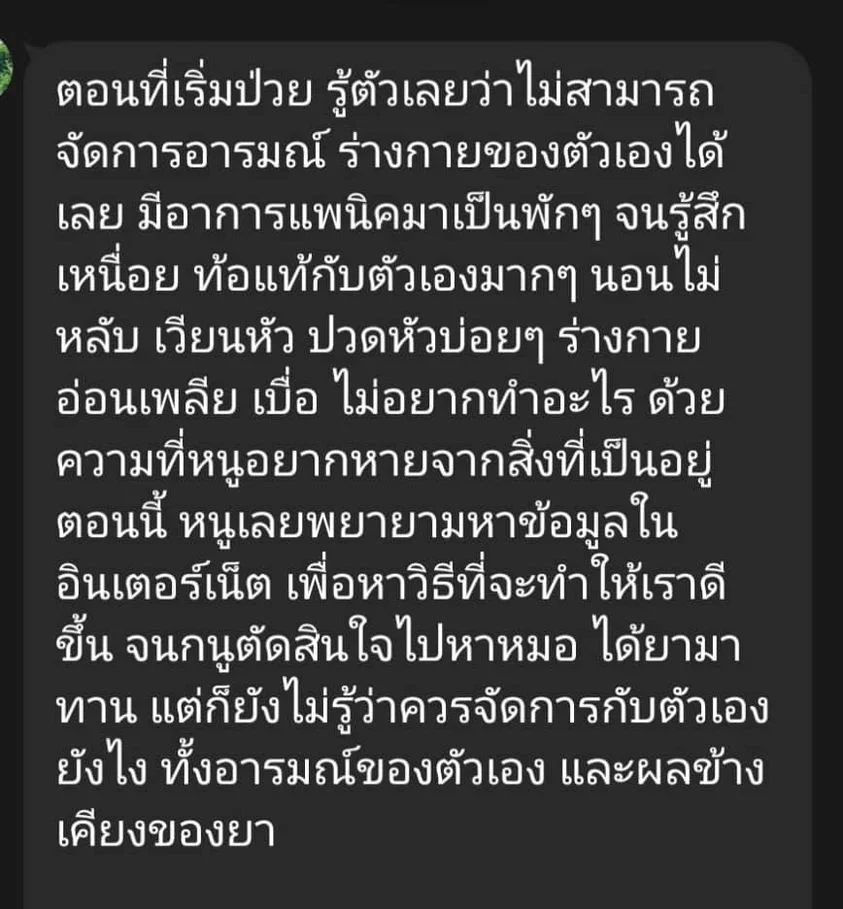 อ่านบทความที่เกี่ยวข้องเพิ่มเติม : แชร์ประสบการณ์หายป่วยจากซึมเศร้า (แบบไม่ใช้ยา)