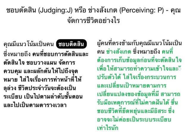 J = Judging (แนวทางการใช้ชีวิตมีระเบียบแบบแผน)